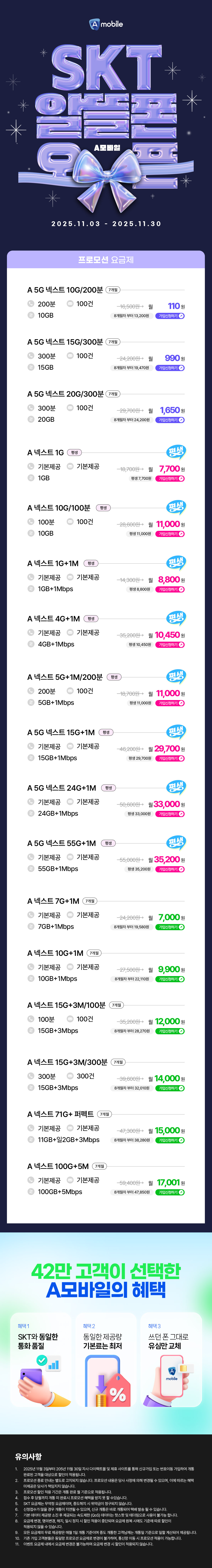 SKT망 11월 오픈 프로모션