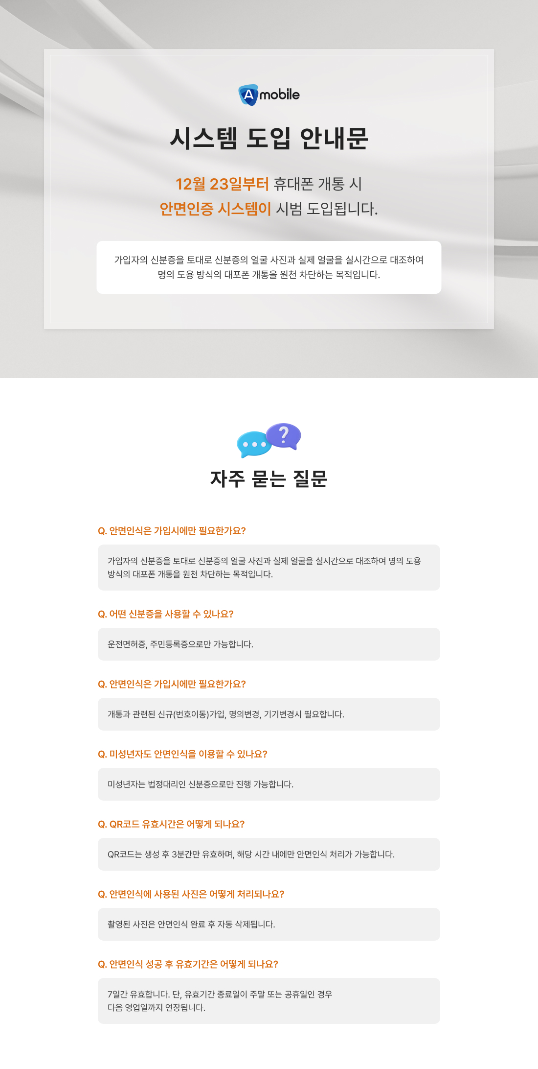안면인증 시범도입 안내